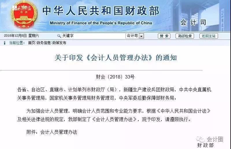 刚刚,财政部发了《会计人员管理办法》通知,主要内容: