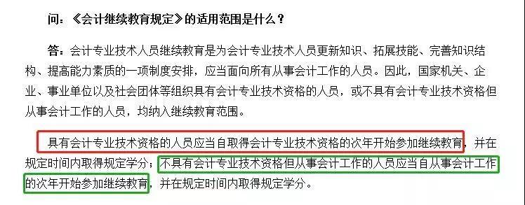 今年5月底,财政部印发了一份印发《会计专业技术人员继续教育规定》答疑:其中明确提出几点,给大家列举一下: