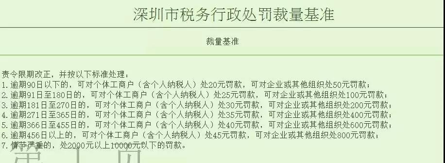 除了《税收征管法》之外,各地还有《行政处罚裁量基准》的规定,来看看深圳怎么罚,精确到天哦~