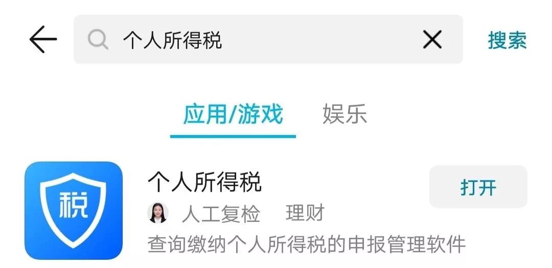 在 APP Store中搜索“个人所得税”,点“获取”进行下载。