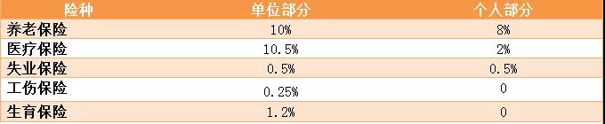 (其中养老保险和工伤保险最低基数为省平的80%)