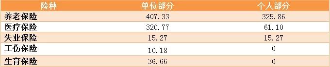 下限3054.95元缴费基数的参保人员需缴纳社保费(单位:元)