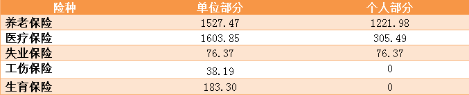 上限15274.74元缴费基数的参保人员需缴纳社保费(单位:元)
