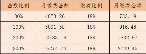 输入标题参加杭州市区职工基本养老保险的灵活就业人员、个体工商户(不含以单位形式参保的个体工商户),月缴费额=月缴费基数×缴费比例,月缴费基数由参保人员按5091.58元/月(上年度全省在岗职工月平均工资)的80%—300%之间自行选择,缴费比例为18%。