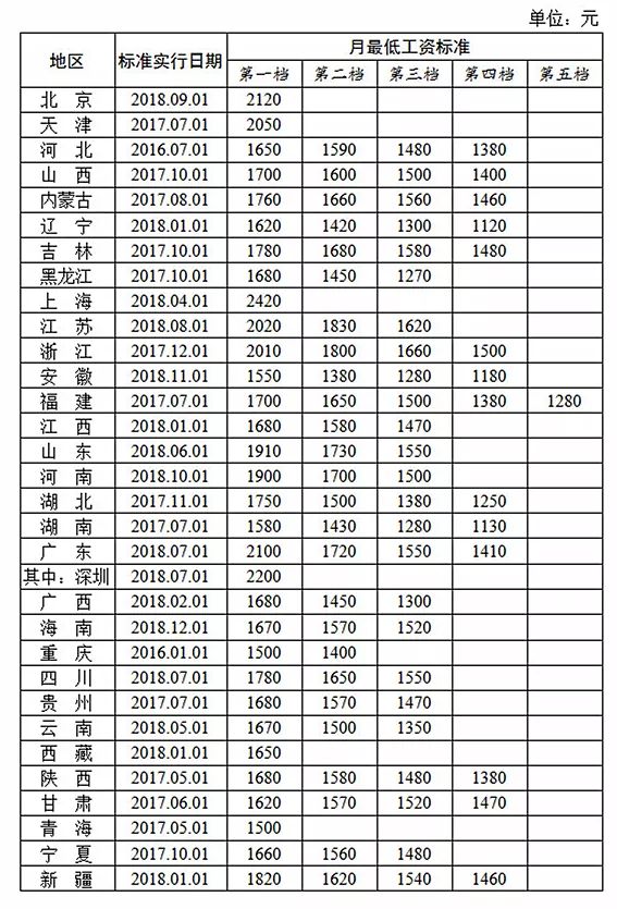 1月10日,人社部网站公布全国各地区月最低工资标准情况(截至2018年12月)和全国各地区小时最低工资标准情况(截至2018年12月)。快来看看你家乡的最低工资标准是多少!