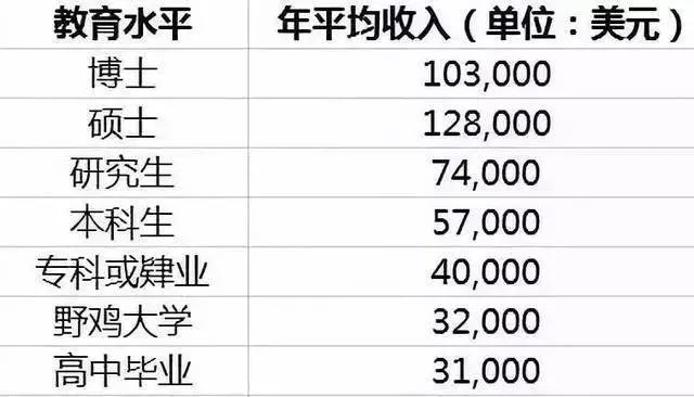 结果,最高学历群体比最低学历群体平均收入高了整整六倍!每个教育阶层都显示出明显的级差,这个差距称不称得上天壤云泥?