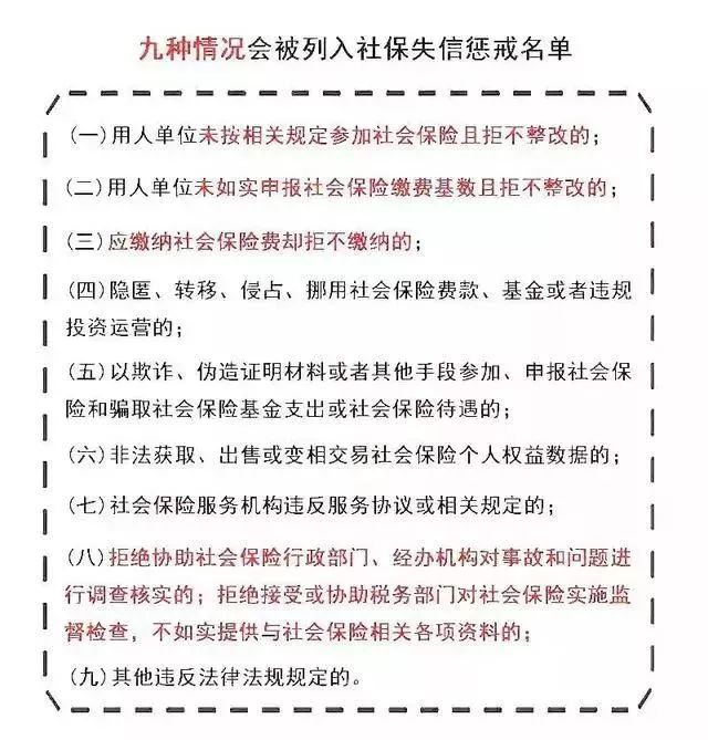 提醒:以下九种情形的将被列入社保严重失信、失范行为惩戒名单