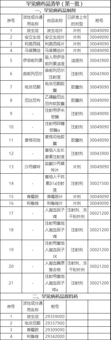 21个罕见病药品价格有望降低
