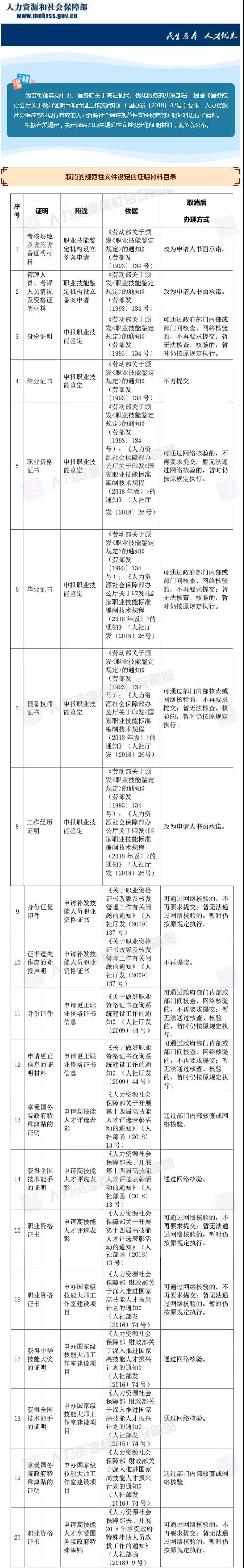 1、人社部重磅通知:取消身份证、毕业证等73项证明材料;