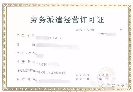 劳务派遣需要人力资源和社会保障局颁的许可资质,如图: