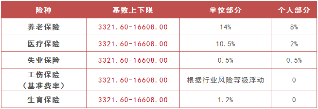 根据最新的社保基数上下限,杭州市单位、在职职工社保缴费基数、比例为: