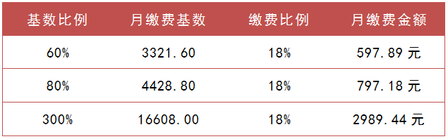 2019年1-4月的缴费基数比例按80%-300%执行。5月起,缴费基数比例按60%-300%执行。