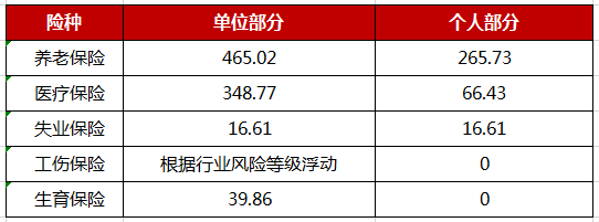 上限16608元缴费基数的参保人员需缴纳社保费(单位:元)