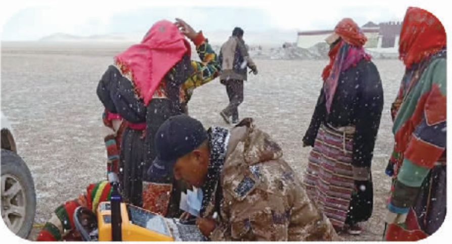 西藏:社保卡人员冒雪现场采集制卡数据