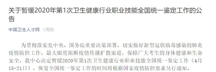 2020年卫生健康行业职业技能全国统一鉴定试时间分为三个批次,每个批次提供两轮考试。