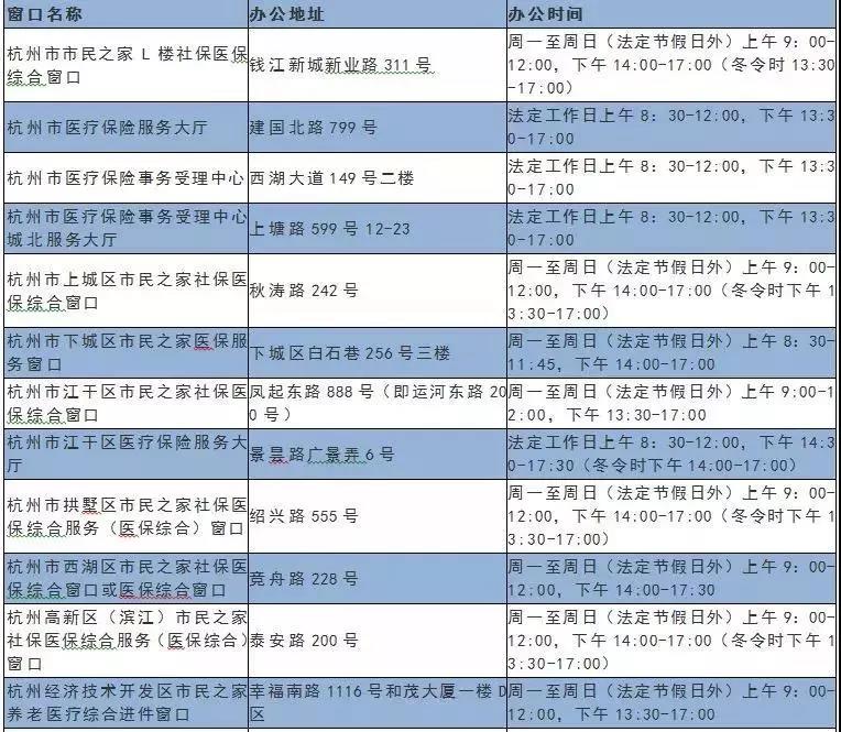 ◆ ◆ ◆杭州市区医保经办机构地址◆ ◆ ◆