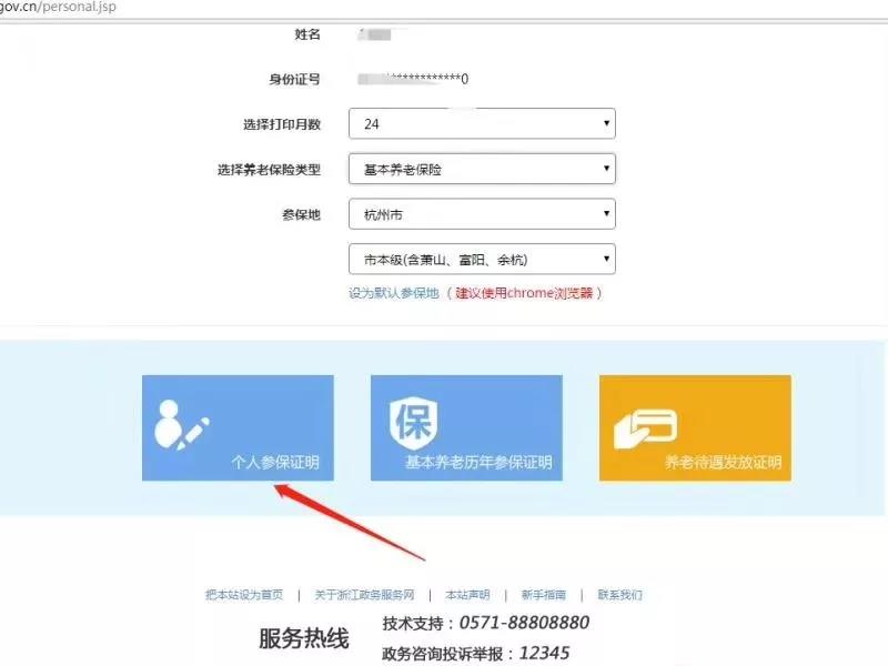 点击进去选择个人社保证明――个人参保证明